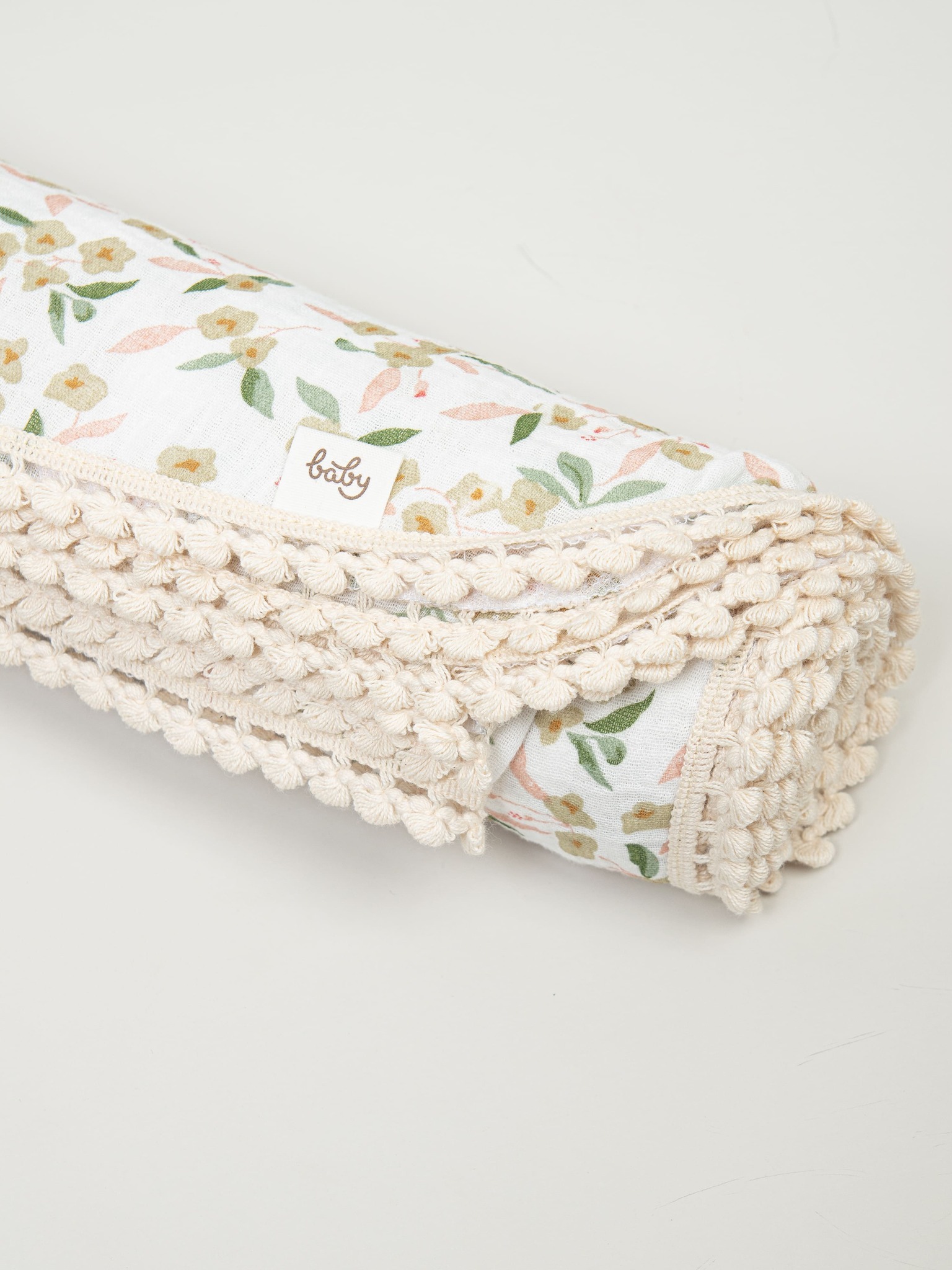 Плед из легкого дышащего муслина с декоративной тесьмой.
