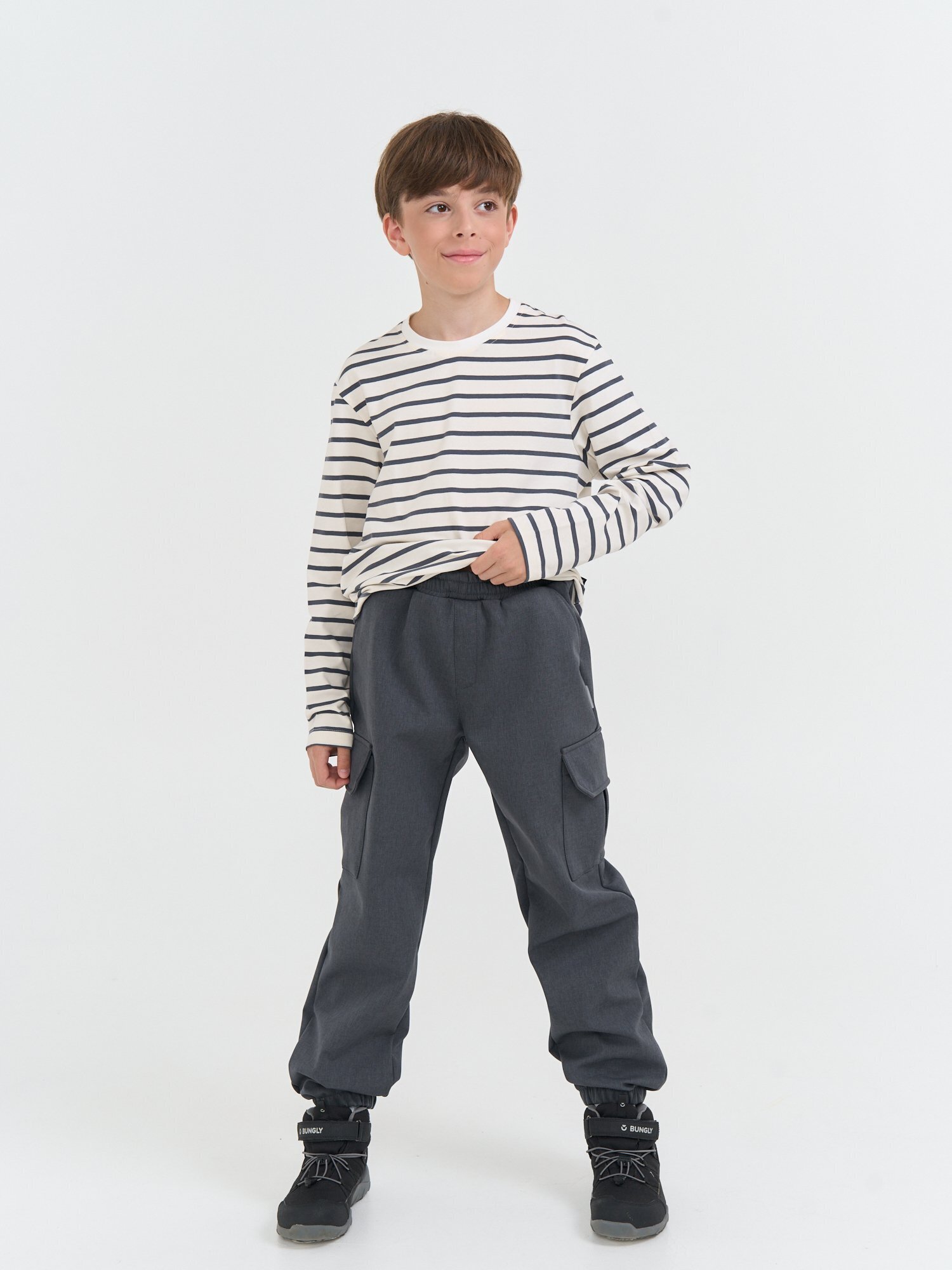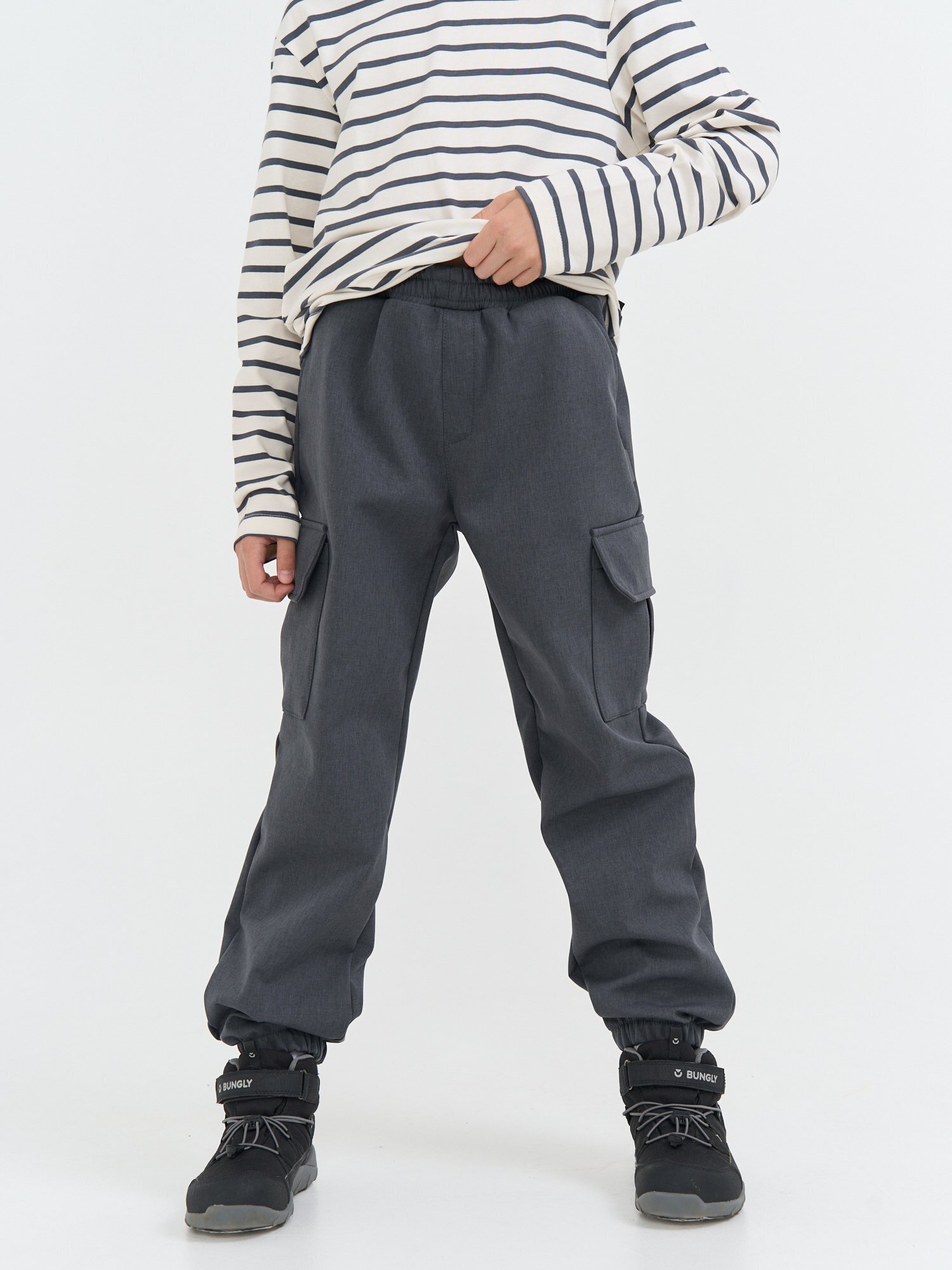 Мембранная ткань софтшелл с показателями 10000/10000 обеспечивает надежную защиту от влаги и продувания, позволяя детям активно проводить время на улице в любую погоду: не промокает даже после прыжков по лужам, а грязь легко смывается.