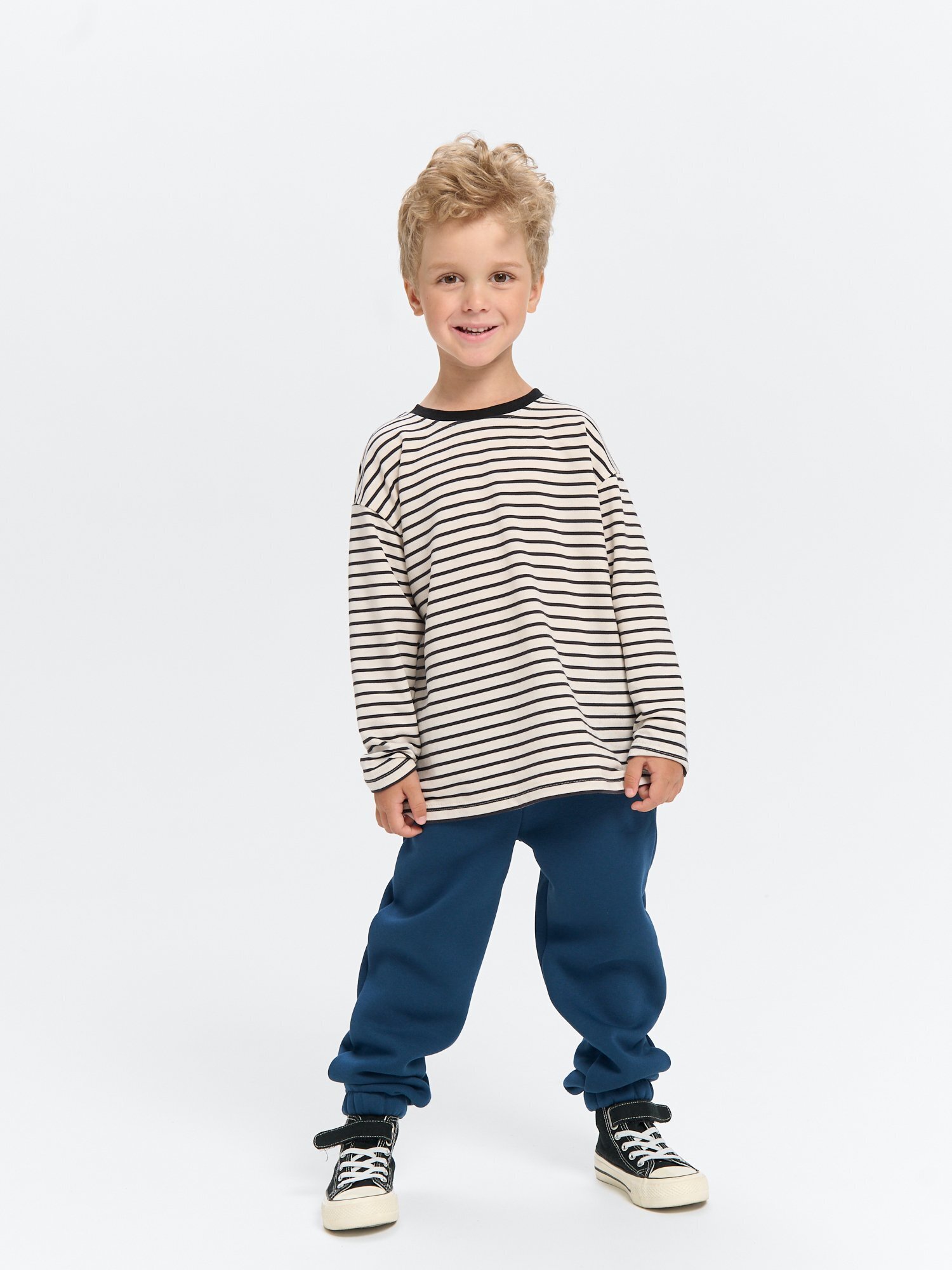 Джоггеры из футера с начёсом – универсальное решение для любого гардероба осенью и весной. Удобно надеть утром в садик и не только, после – отправиться на кружки или к друзьям в гости.