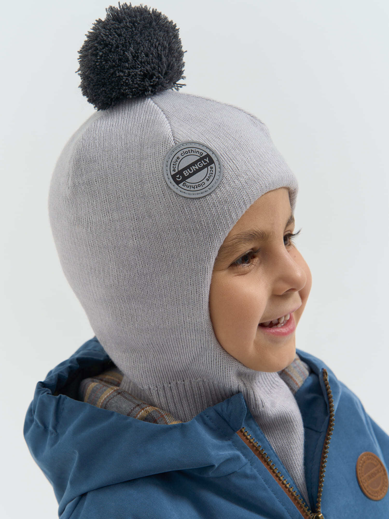 Верх - 70% акрил, 30% шерсть; ветрозащитная планка - 100% полиэстер; подкладка - 95% хлопок, 5% лайкра