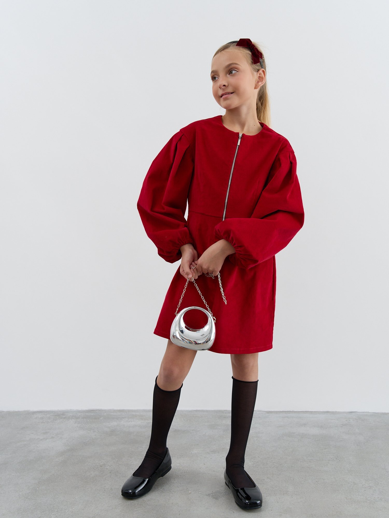 Объёмные рукава-фонарики со сборкой на резинку по низу.