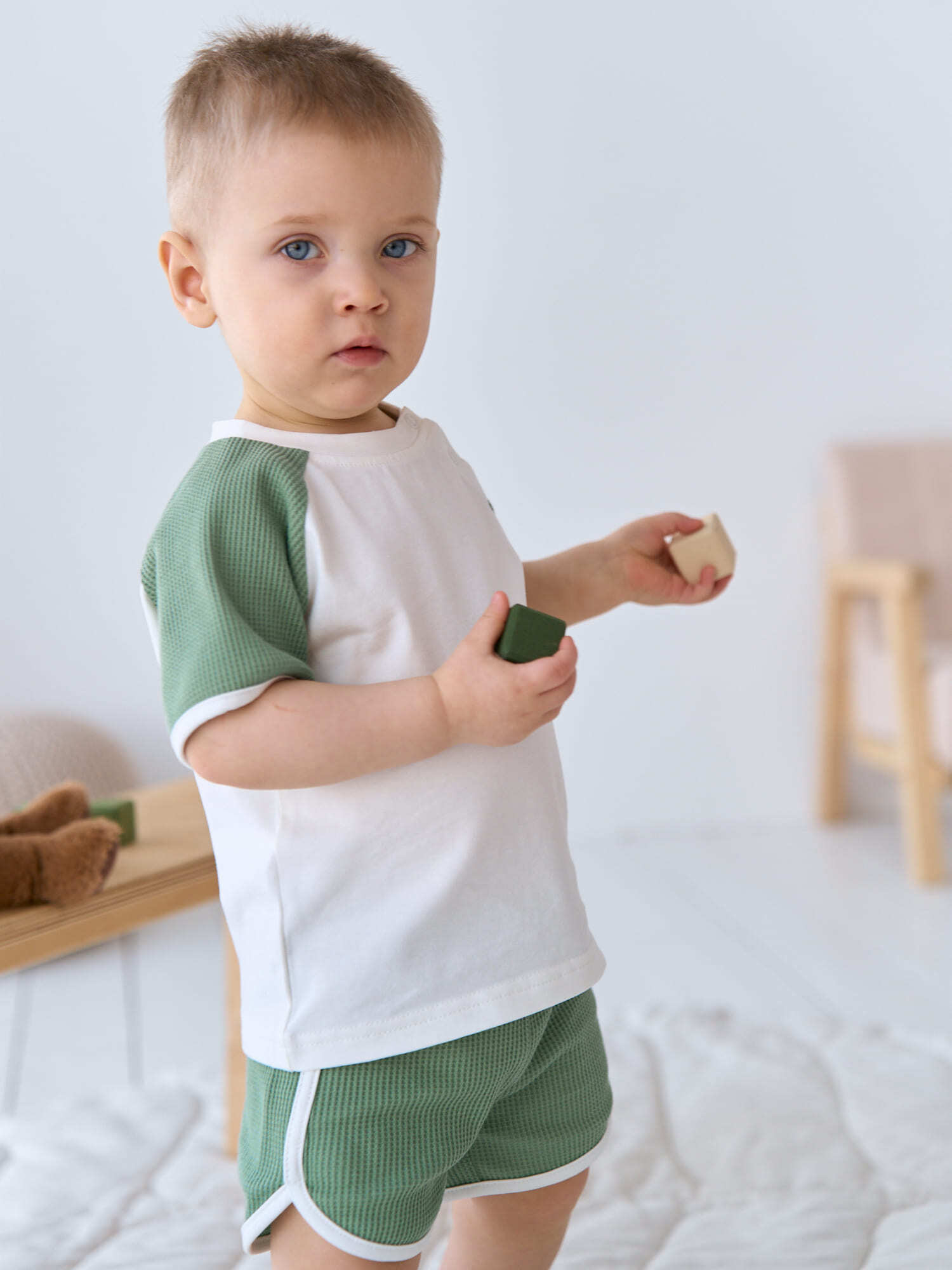 Футболка - кулирная гладь; шорты - вафельный трикотаж