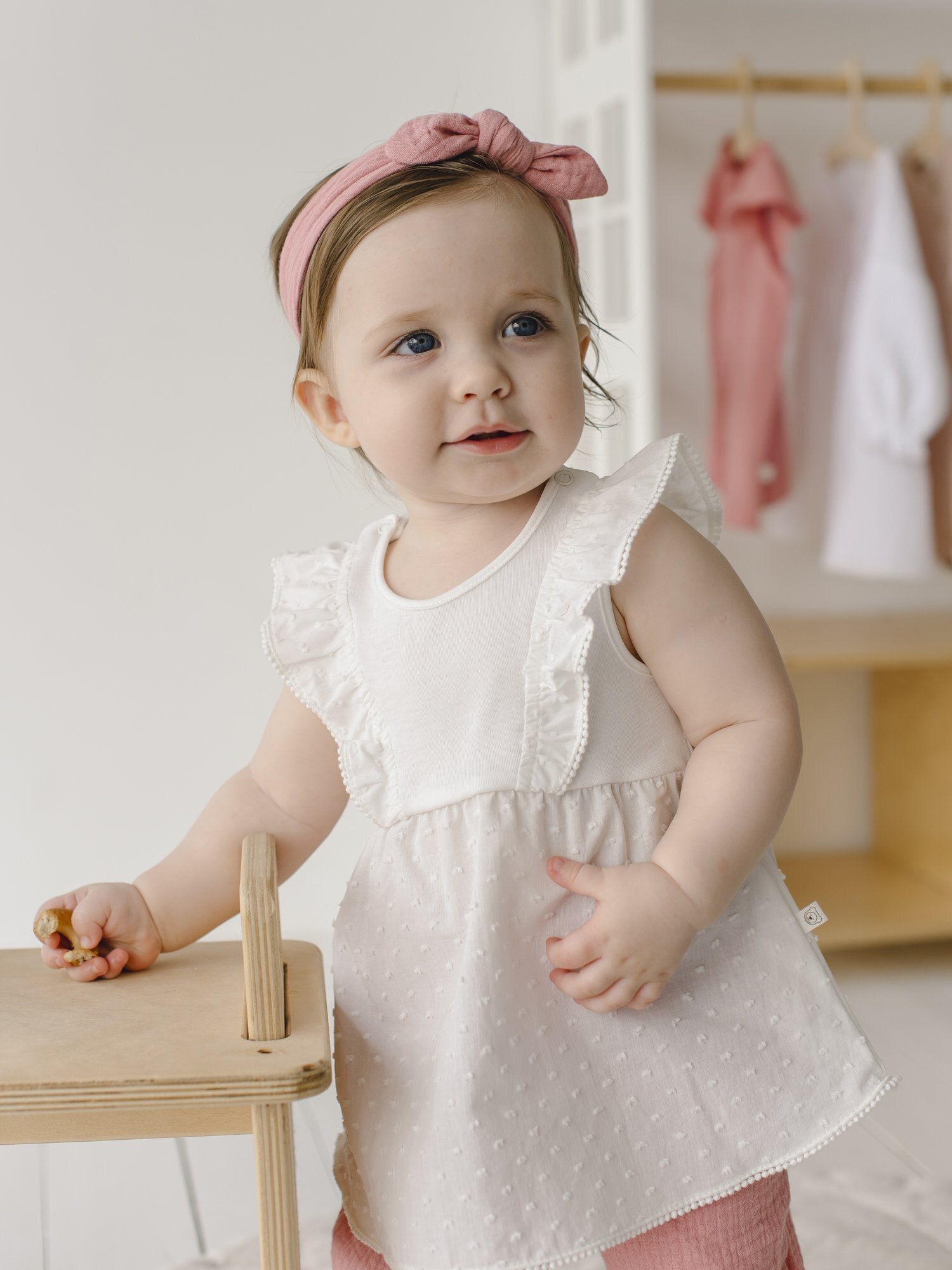 Очаровательный топ с баской для девочек из дышащего хлопка.