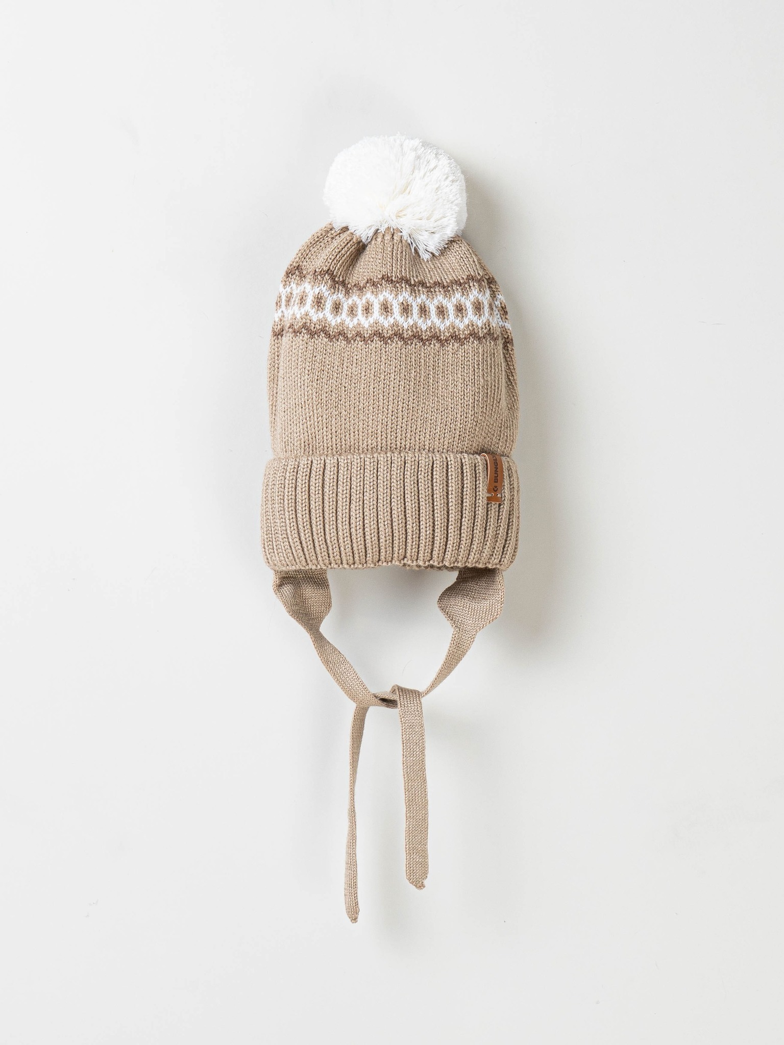 Зимняя шапка с узором на завязках для комфортных прогулок.
