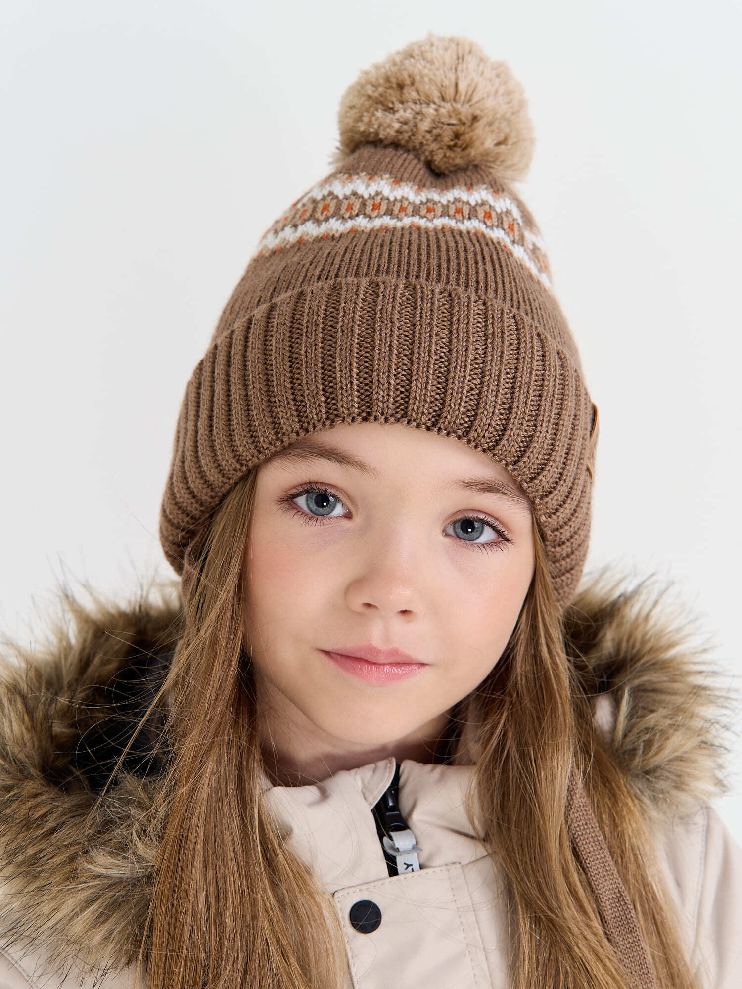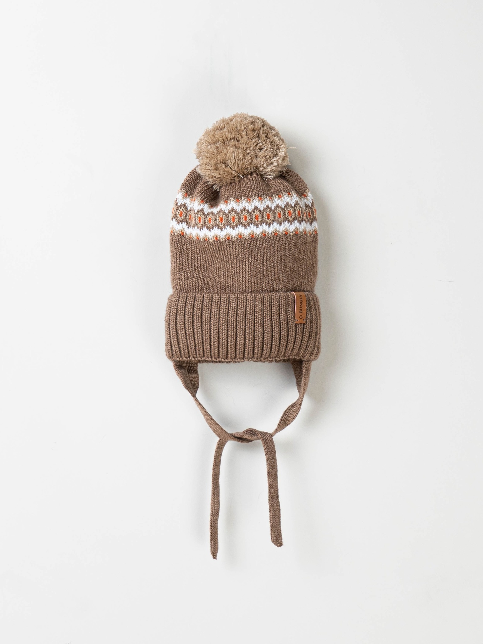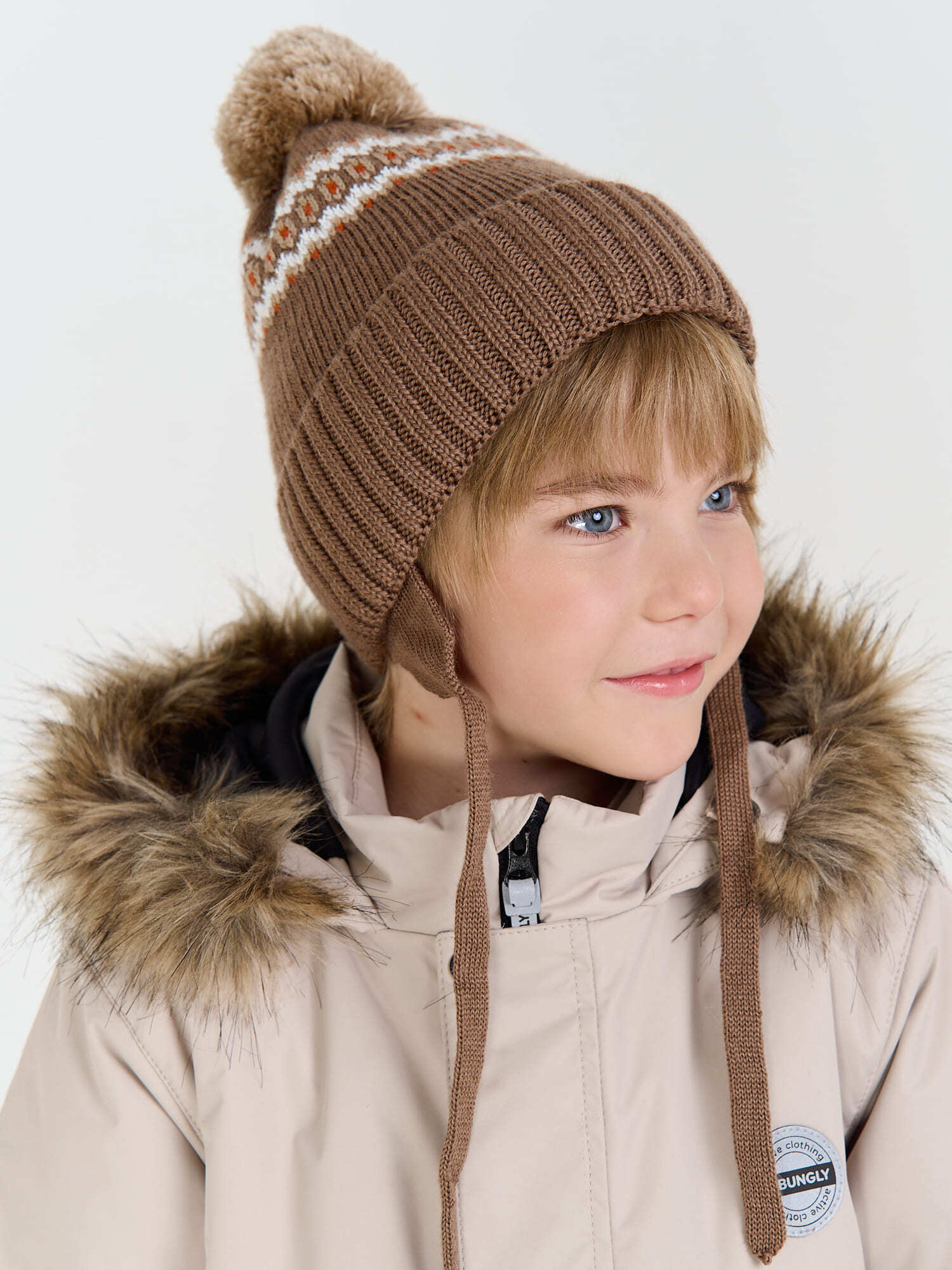 Зимняя шапка с узором на завязках для комфортных прогулок.