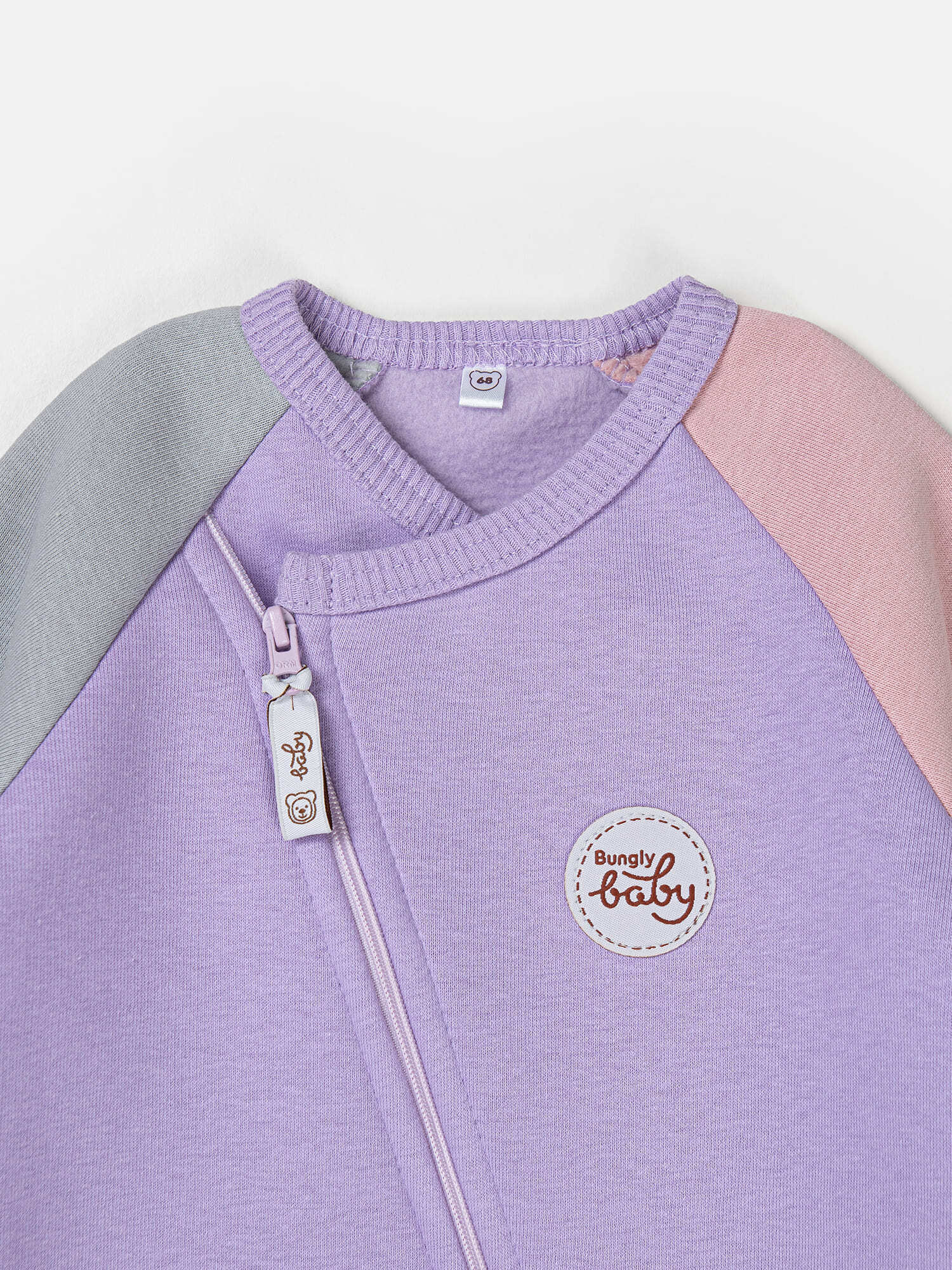 Асимметричная застежка-молния и двойной бегунок для удобства смены подгузника.