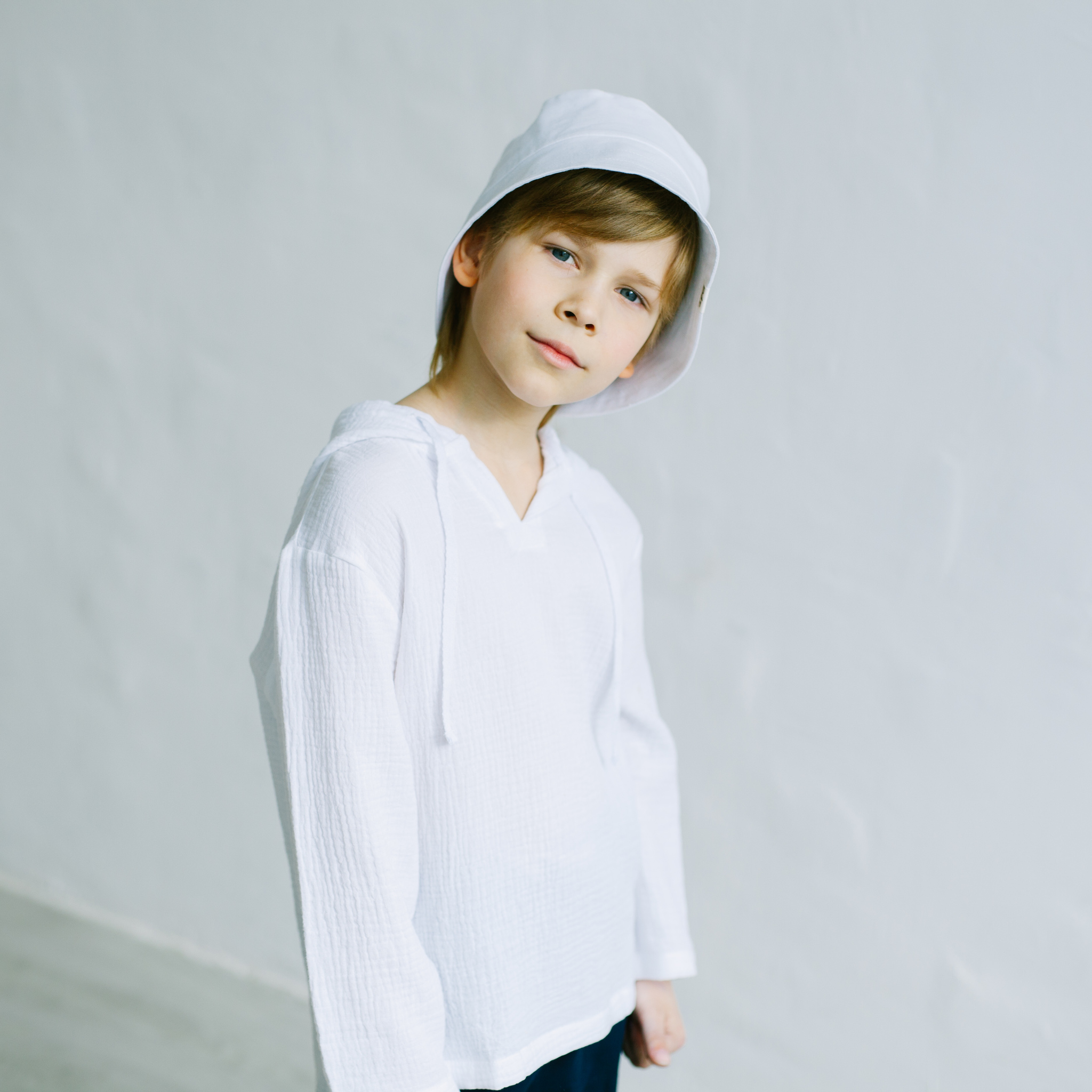Капюшон с завязками и длинные рукава для защиты от солнца.