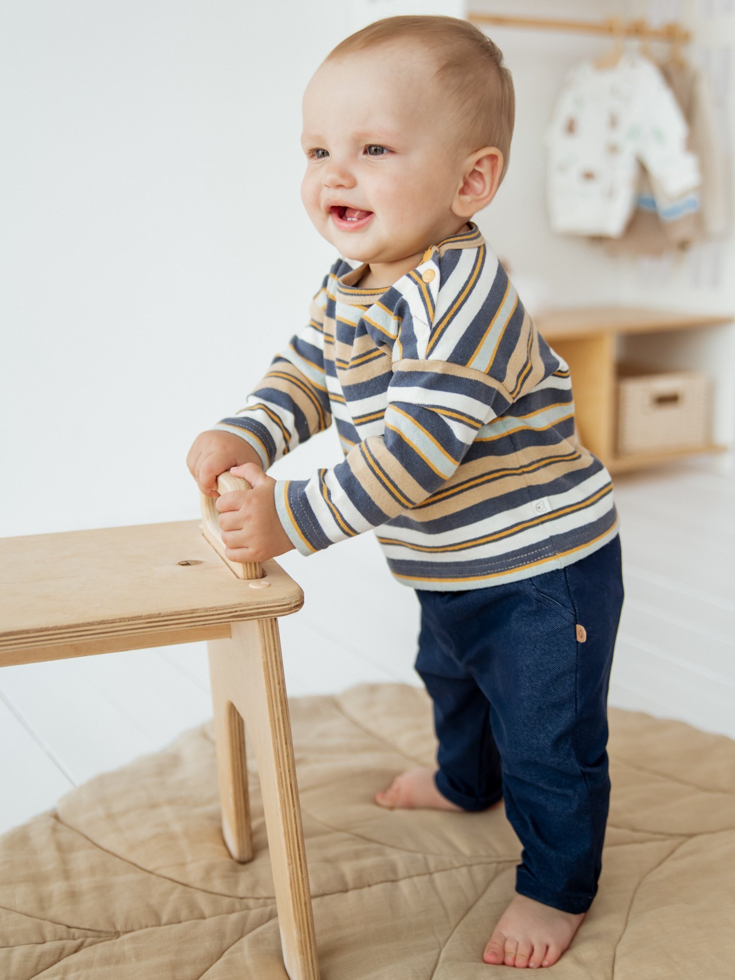 Отвороты по низу добавляют интересный акцент и позволяют подстроить длину под рост малыша.
