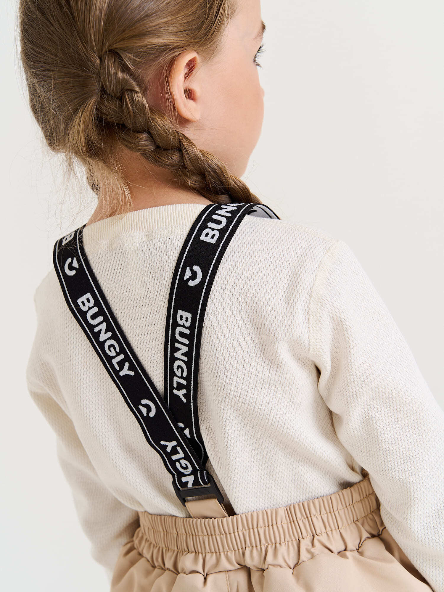 Широкий пояс на резинке обеспечивает плотную, но комфортную посадку, полукомбинезон не сползает и не давит.