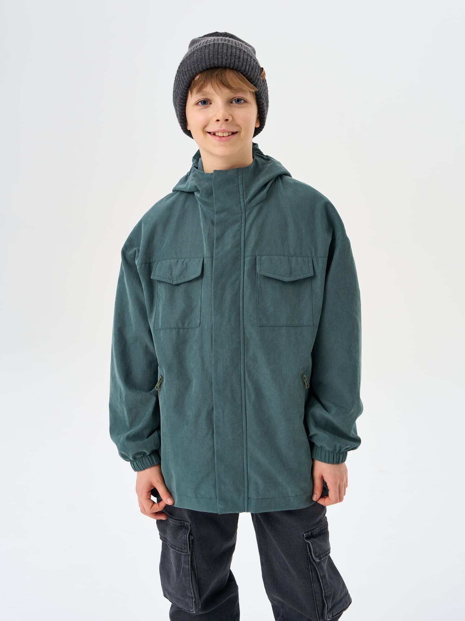 Несъемный капюшон с утяжкой на резинку для идеальной посадки.